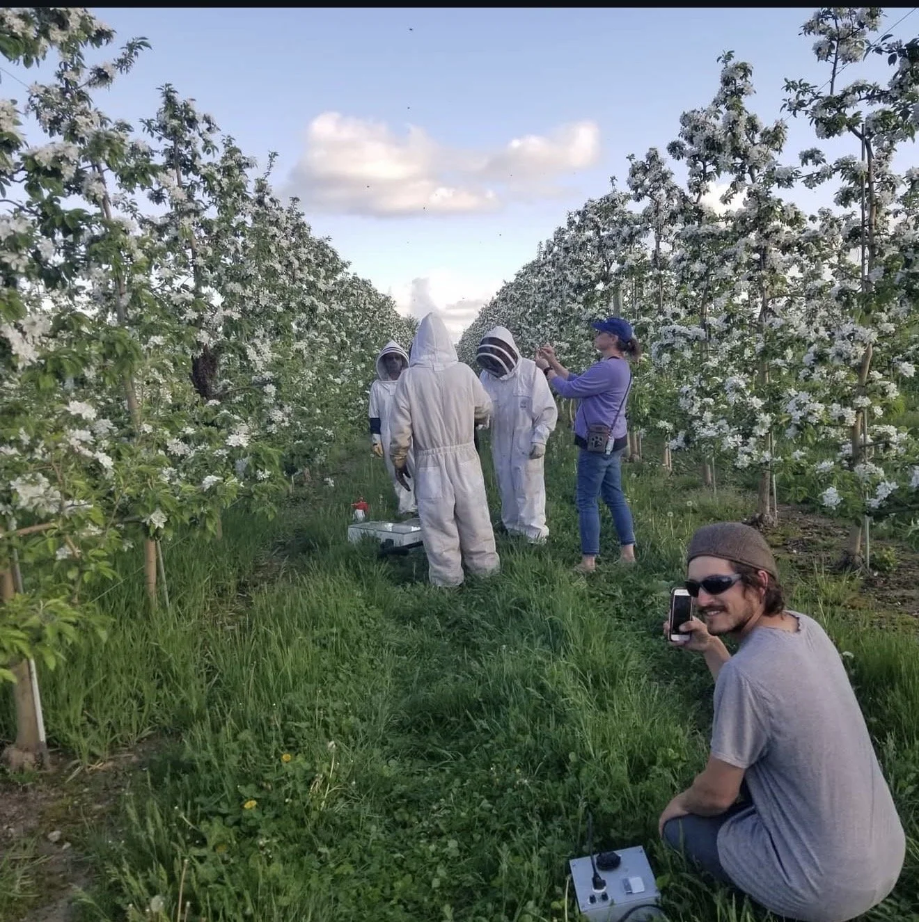 Eric keeps around 100 hives on the farm year round, these bees play a crucial role in our apples cross pollination